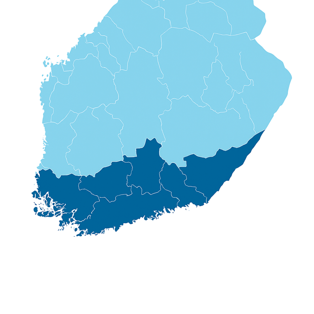 Helsinki, Espoo, Vantaa, Kauniainen, Kerava, Järvenpää, Tuusula, Hyvinkää, Nurmijärvi, Lohja, Porvoo, Loviisa, Lahti, Hollola, Riihimäki, Hämeenlinna, Forssa, Kouvola, Kotka, Hamina ja muut kaupungit.